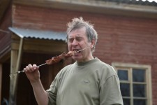| У Германа Львовича.Был случай встретиться с интересным человеком. Герман Стерлигов, оказалось живёт не так далеко от Москвы - всего в восьмидесяти километрах с гаком... Личность известная. Но шел целый день дождь. Да к тому же аграрный миллионер подбил себе ногу черенком от лопаты и больно хромал. Поэтому экшына я не наснимал совершенно, да и вообще ситуацией командовал не я, так что...  | ||